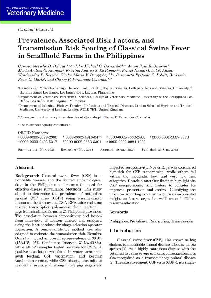 Philippine Journal of Veterinary Medicine UP Los Banos