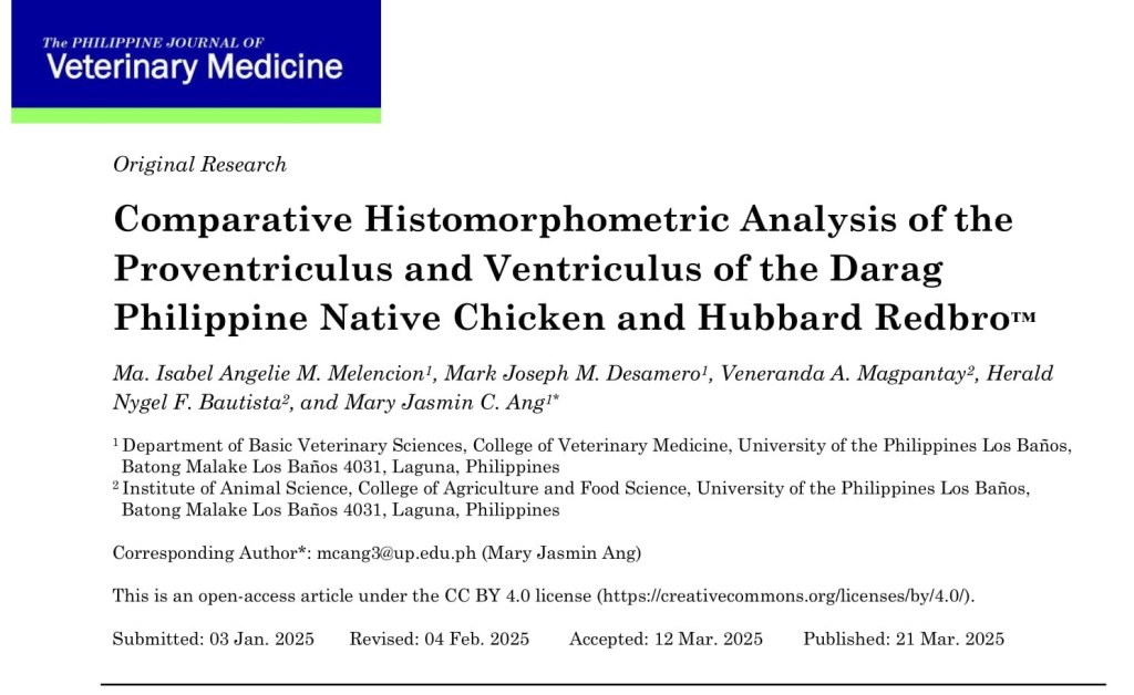 Keywords: Darag, Histomorphometry, Proventriculus, Ventriculus, Philippine native chicken