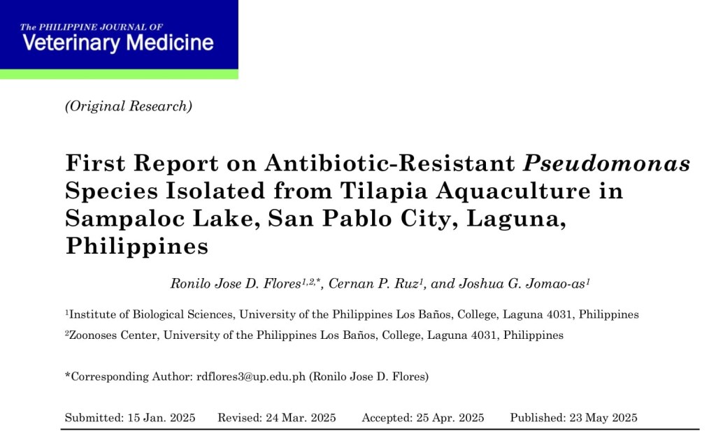 Background: Tilapia aquaculture in Sampaloc Lake significantly contributes to the livelihood and food security of the communities in San Pablo City, Laguna. Early detection of pathogens and antibiotic-resistant bacteria that could potentially affect tilapia production and the health of the consumers is essential to avoid outbreak of infections. Methods: The study identified 16 selected bacterial strains from tilapia fish in Sampaloc Lake through a polyphasic taxonomic approach in bacterial identification. Results: The bacterial strains are Gram-negative, aerobic, non-fermentative bacteria, and most produce fluorescent green pigment. Through 16S rRNA gene sequencing, they were identified as Pseudomonas species, particularly P. entomophila (n=2), P. guariconensis (n=3), P. mosselii (n=6), P. oryzihabitans (n=1) P. soli (n=2) and P. wadenswilerensis (n=2). They all exhibited resistance against Ceftazidime (30μg) and most were resistant to about two to four out of the eight antibiotics tested through the Kirby-Bauer disk diffusion method. Pseudomonas mosselii were described as a fish pathogen; thus, the addition of their antibiotic resistance could serve as threat in Tilapia aquaculture. Conclusion: The result of the study could facilitate the formulation of evidence-based mitigating measures and policies aimed at safeguarding public health ensuring the socio-economic stability of Sampaloc Lake, including its resources.